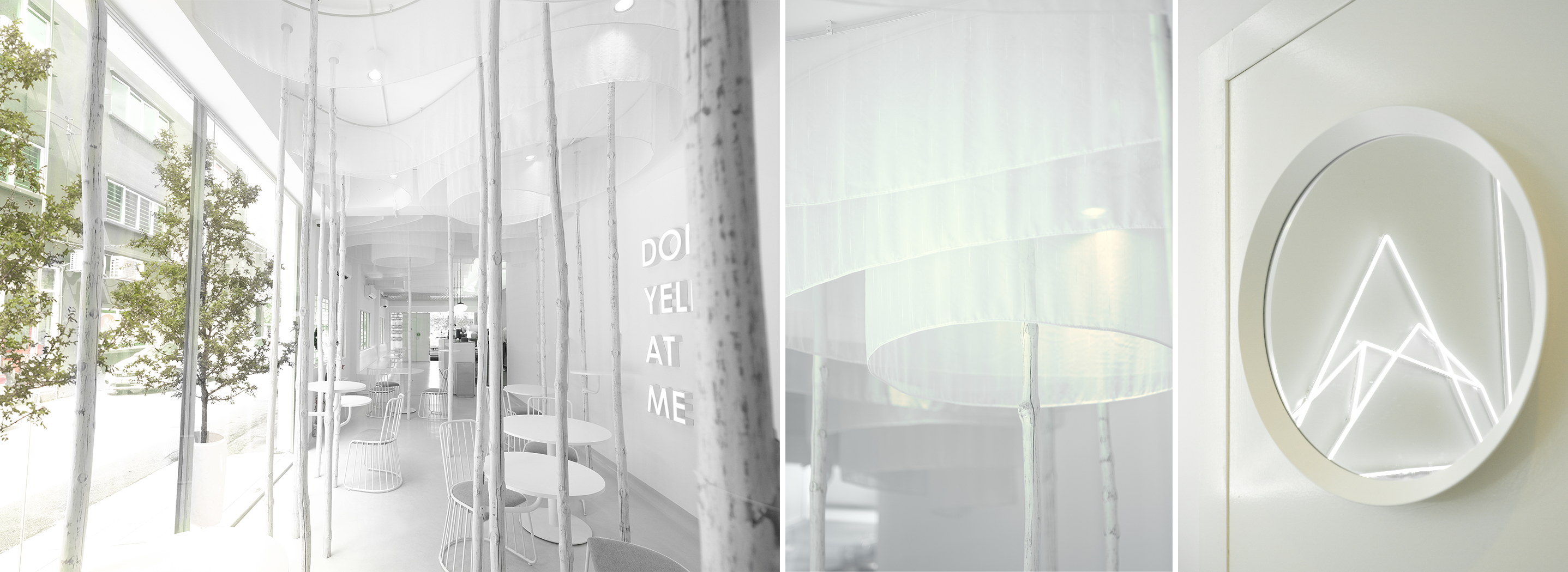 位于甲洞的分店,由于该发展地区树木稀少,店铺的概念可以助于“绿化”这片钢骨水泥。过度发展使到地段过于生硬,所以店铺中段的落地窗让枯燥的侧路生动起来,也能增加室内光线,